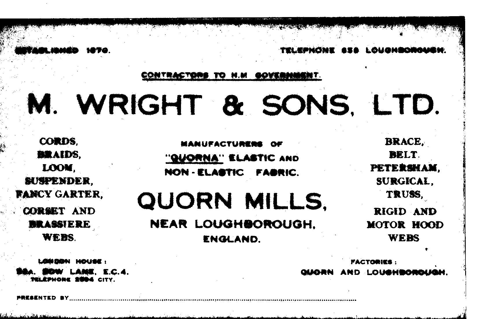 Founded in Leicester, producing elastic and rigid webbing for footwear and corsetry.